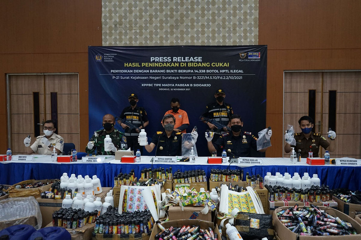 Selanjutnya Kepala Kantor Bea Cukai Sidoarjo, Pantjoro Agoeng menjelaskan bahwa dari operasi penindakan tim berhasil mengamankan 14.338 botol vape berbagai merek tanpa dilekati pita cukai. ” Total nilai barangnya sebesar Rp559.590.516 dengan total kerugian negara yang berhasil diselamatkan senilai Rp 318.966.594,” jelasnya.