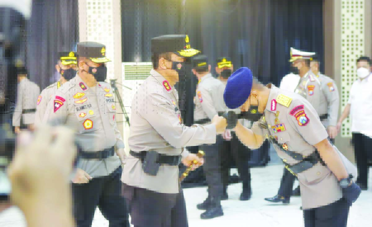 INDOPOSCO.ID – Kapolda Jawa Timur Irjen Pol Nico Afinta memimpin langsung Upacara serah terima jabatan (Sertijab) empat pejabat utama dan lima kapolres jajaran Polda Jatim di Gedung Mahameru Mapolda Jatim, Jumat (7/1/2022).