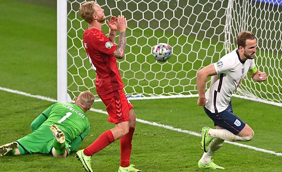 Kane yang menjadi algojo awalnya gagal mengeksekusi penaltinya karena tendangannya bisa dimentahkan Schmeichel, tapi bola muntah tepisan sang kiper malah mengarah ke penyerang Inggris itu dan dengan sigap sang kapten menyambar dan menceploskan bola ke gawang Denmark. The Three Lions memimpin 2-1 pada menit ke-104.