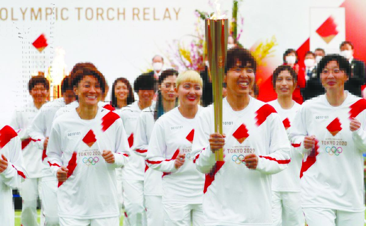 Kirab obor Olimpiade Tokyo juga dialihkan dari jalanan umum ibukota dengan pelari ambil bagian dalam acara estafet obor. (mg1)