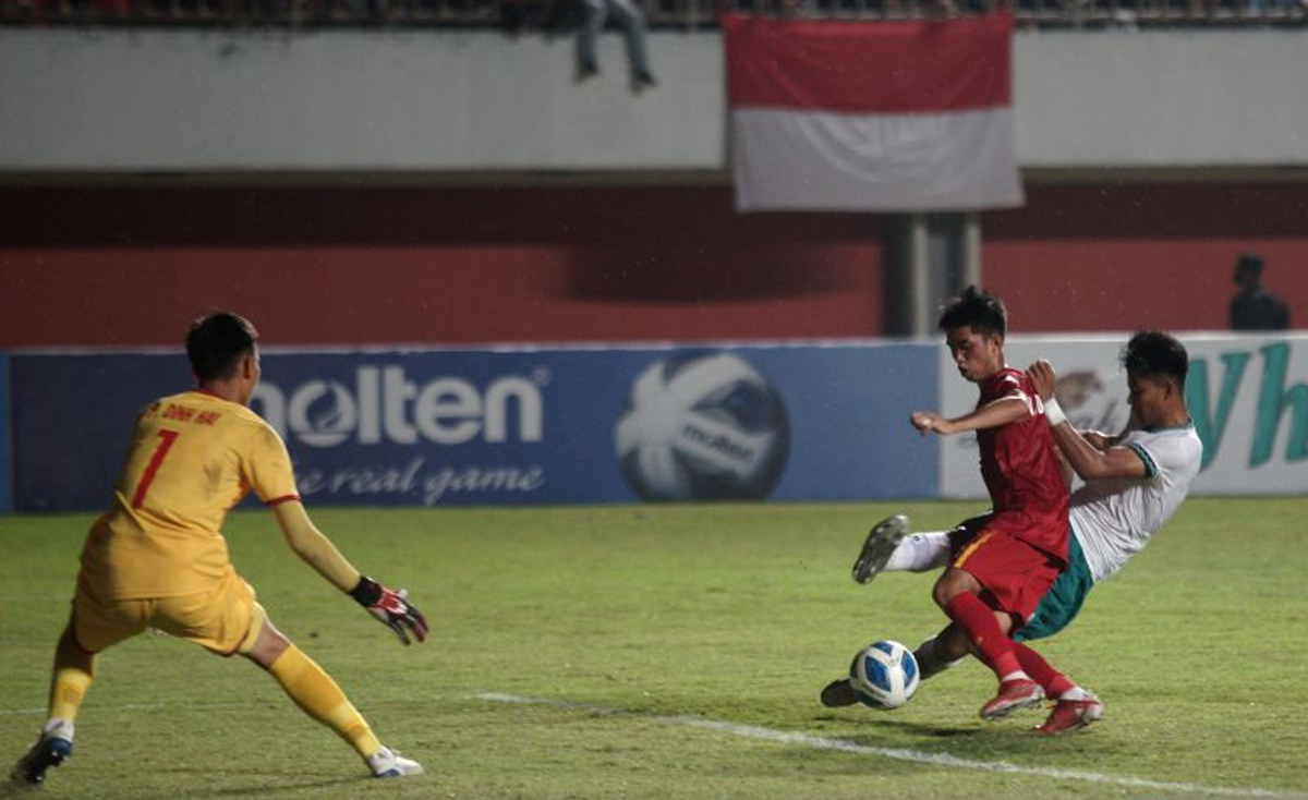 Vietnam tak mau kalah dan melepaskan satu tembakan satu menit kemudian dari sundulan Le Dinh Long Vu yang mampu ditepis kiper Andrika Fathir Rachman.