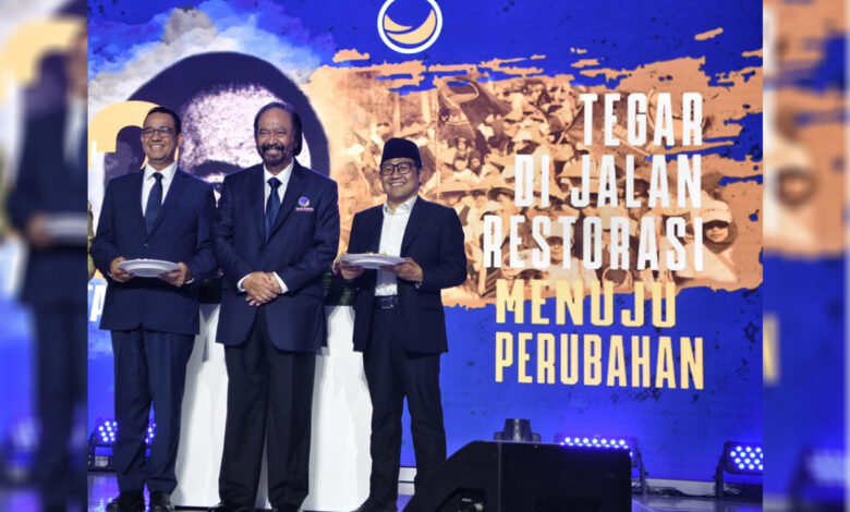 “Pak Surya Paloh nahkoda NasDem memberi ketelandanan bahwa sekali layar terkembang surut kita berpantang. Itu jadi pegangan kita semua. NasDem 12 tahun torehkan banyak catatan,” tutur Anies.