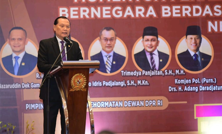 “Membangun sistem etika yang mumpuni berdasarkan Pancasila dan UUD 1945, merupakan upaya kita dalam menggali nilai-nilai luhur yang terkandung dalam setiap percikan pemikiran dan untaian kata apa yang terkandung dalam Pancasila. Nilai yang terkandung dalam Pancasila sebagai sistem etika tersebut, yakni nilai ketuhanan, kemanusiaan, persatuan, kerakyatan, dan keadilan,” papar anggota Komisi III DPR RI ini.